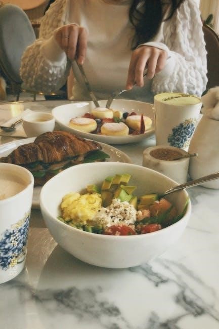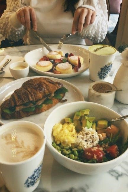 Currently, a dedicated PDF outlining complete balanced diet plans incorporating Bluestone Lane isn’t available. However, focusing on fresh ingredients and understanding macronutrient distribution – carbohydrates, fats, and proteins – is vital. Remember the general guideline of 2,000 calories per day, adjusting based on individual needs and activity levels, and utilizing tools like Eat This Much for meal planning.